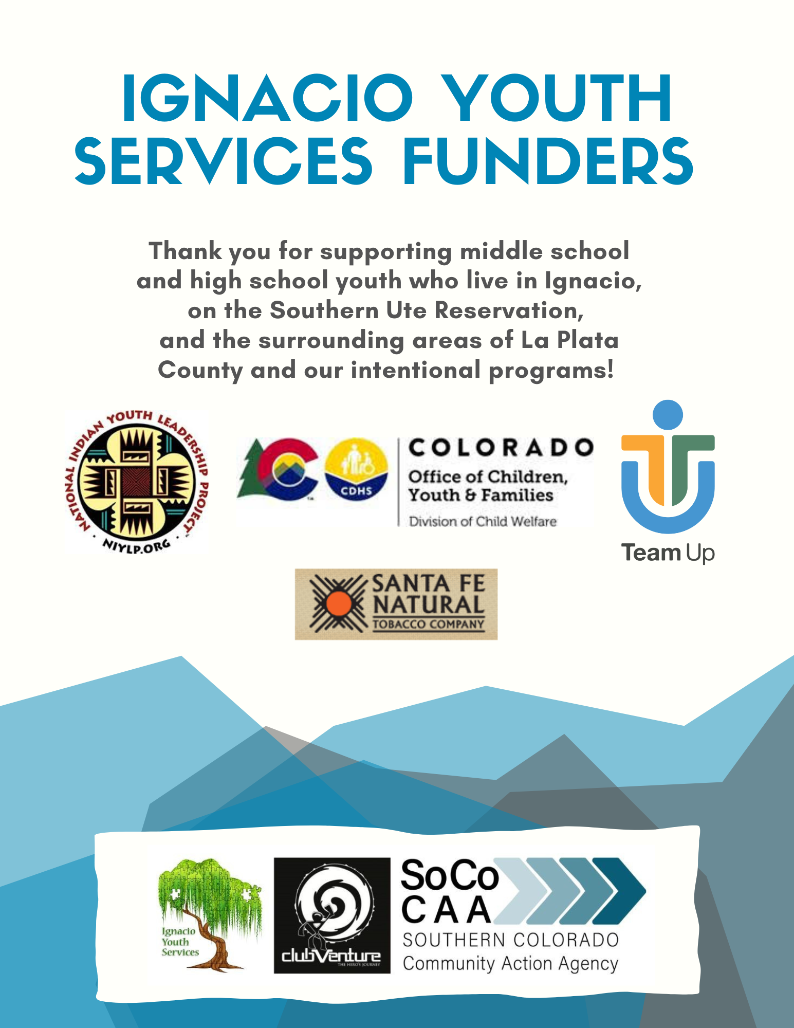 Ignacio Youth Services: 115 Ute Dr, PO Box 800, Ignacio, CO 81137 Office (970) 563-0698 Fax: (970) 563-4504